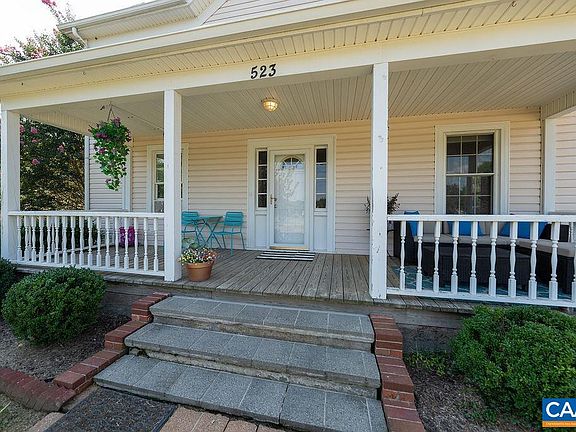 A perfect combination of country charm and modern convenience, this late 19th century farmhouse is nestled in a private setting with great proximity to amenities. The kitchen with butcher block island, granite counters, stainless appliances, and pendant lighting opens onto both the living room and the east-facing sunroom, which catches beautiful morning light. Upstairs are four large bedrooms and an updated bathroom with separate vanities. Beautiful original pine hardwood floors throughout. The large, level yard is ideal for gardening, entertaining, play and pets. Spacious shed serves as additional storage. The gazebo is a perfect spot for outdoor dining or enjoying the tranquility of the backyard. An oversized, climate controlled two-car garage with workshop space provides plenty of room for hobbies and storage. 5 min from shopping, restaurants & Hwy 64. Only 30 min from Charlottesville.