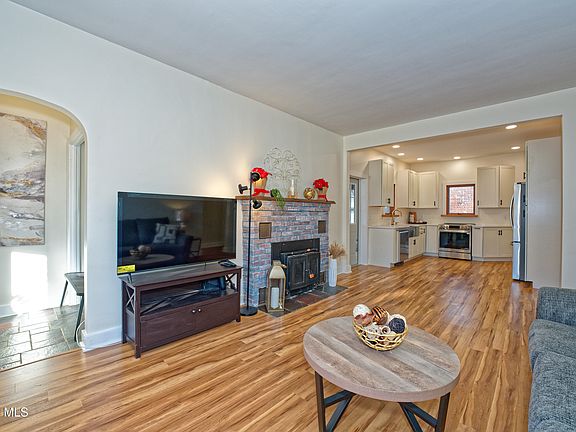 Wlecome to your beautifully remodeled 1947 bungalow where timeless charm meets modern comfort. Featuring 4 large bedrooms, 1.5 baths, an office, and a spacious living room anchored by a white-washed brick fireplace, this home offers an open and airy layout filled with abundant natural light and elegant curved archways. The completely reengineered kitchen shines with soft-close full-overlay cabinets, quartz countertops, LG stainless steel appliances, Delta Smart Touch faucet, and an ELKAY farmhouse sink. Enjoy walking on quality Cortec luxury vinyl plank floors on the first level and plush new carpet throughout the upstairs.