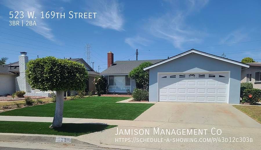 Charming 3-Bedroom, 2-Bathroom Home in a Prime Location! Discover this beautiful single-family home nestled in a private cul-de-sac within an exceptional neighborhood. This home features 3 spacious bedrooms, including one with its own ensuite bath, and 2 full bathrooms. Enjoy the warmth of Pergo laminate wood flooring throughout, complemented by a cozy fireplace in the living area. The kitchen and dining space is expansive, perfect for gatherings, and comes equipped with a brand-new Stainless steel: refrigerator, cooktop, oven, and a gently used washer and dryer. Mirrored closet doors in bedrooms. Feshly painted inside and out! The easy-to-maintain front yard boasts lush artificial turf, keeping it vibrant year-round. In the private backyard, you'll find mature fruit trees, including persimmon, avocado and lemon, offering a peaceful retreat. Large 2-car garage with a driveway. This home is ready for immediate move-indon't miss the opportunity! Dual Pane Forced Air Heating Fridge Garage Detached Gardener Hardwood Laminate Flooring Laundry On Street Parking Pets Negotiable With Deposit Quartz Range Oven Recently Remodeled Shower Doors Stove Top Tile Washer Washer & Dryer
