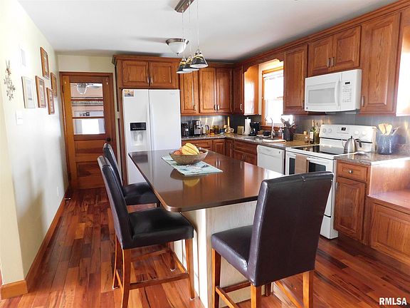 Great little 2BR/1.5Bth all brick bungalow in great neighborhood. Hardwood floors throughout, beautiful kitchen cabinets, countertops and island. Solid house without a crack in the plaster walls. Original solid wood interior doors and electric see-through fire place being converted to gas add to the charm. Attached garage is heated and air conditioned and serves as man cave with both insulated and screen garage doors. Detached two car garage sits in huge back yard perfect for you gardeners. Custom built cedar fence encircles part of the side and back yards and is perfect for your critters. The dry basement has some stud walls added and is used extensively for storage and laundry room. Owner has been told this is the most solid built home in town and I believe him. Owner has found his dream location and is ready to move.