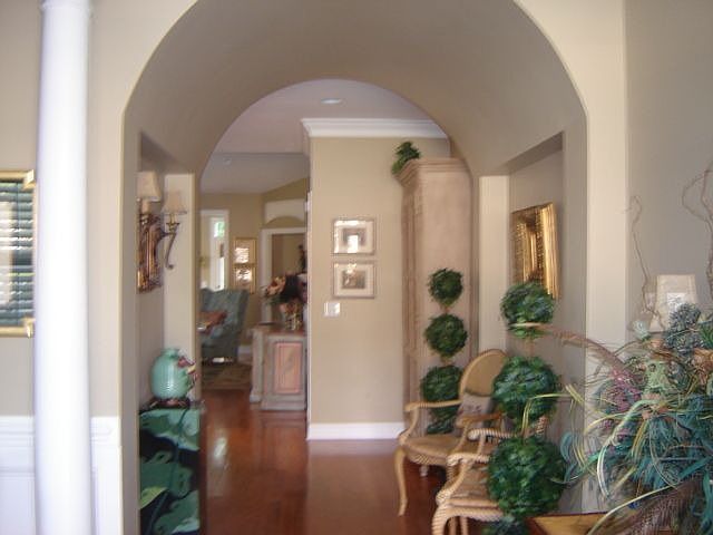 Beautiful brick patio home with lots of upgrades and built-ins. 4 yr old community with sidewalks and street lights. Maint. free windows, soffits and trim. 4 BR 3 bath, 2 car gar., sun room. Upgrade Granite, stainless, glazed maple 42" cabinets. Lots of wood floors, upgrade lighting and fans. Dramatic barrel vaulted foyer. Backs up to conservation area.