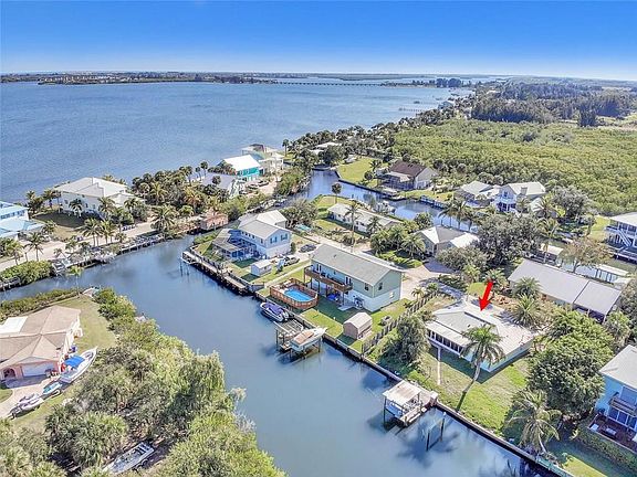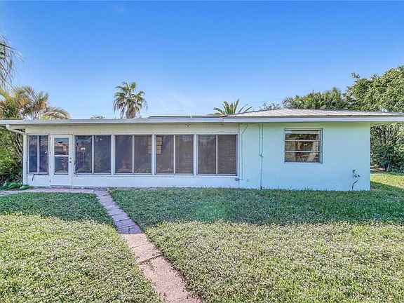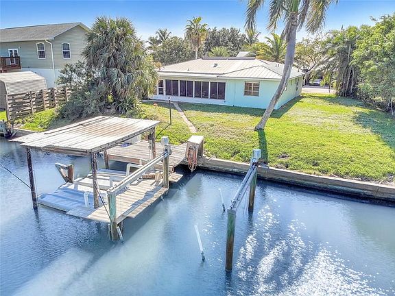 Vintage 1969 cbk home on canal with access to the Intracoastal and beyond....Three bedrooms, two baths....updated kitchen, ceramic tile and terrazzo flooring. metal roof... spacious kitchen with breakfast bar, slider doors to huge enclosed porch from master br and guest bedroom. ceramic baths with walk in shower in master. Quiet and secluded