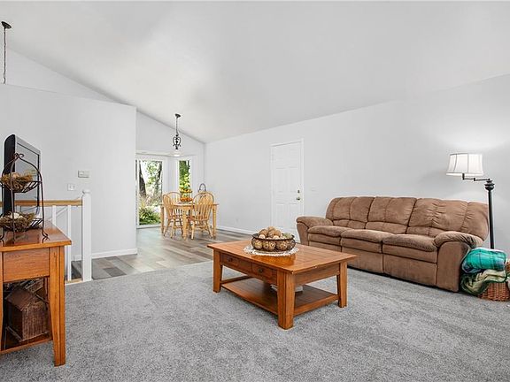 Enjoy the country life! This 3 bed, 3 bath home features new carpet, new roof, new gutters, new siding, new windows, new interior paint vaulted ceilings, wood stove, master bedroom with private bath & walk-out patio, water treatment system, large lower level family area, large fenced yard, & mature trees. This home qualifies for Rural Development Loan (no money down), call today for a referral for a lender!
