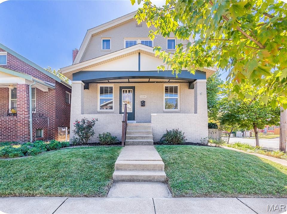 Relax on the charming front porch and enjoy the changing seasons with friendly neighborly hellos. Step inside to a cozy living room featuring original stained-glass windows that flows into the formal dining room — perfect for family dinners and holiday gatherings. The kitchen opens to a bright breakfast nook and an adjacent office space with great storage — ideal for working from home or a homework station for the kids. South-facing windows fill the space with natural light and overlook a private backyard retreat. A main-level bedroom sits next to a full bath, offering a comfortable setup for guests or a quiet office option. Upstairs, you’ll find two additional bedrooms, an updated full bath, and a spacious primary suite with abundant storage. The lower level offers a versatile space that can serve as a family room, gym, or playroom — complete with a convenient half bath. Outside, beautifully landscaped areas include a native wildflower garden, a private backyard, and a spacious two-car garage. All of this is situated in a vibrant, walkable neighborhood with plenty of local favorites nearby, including Onesto’s, Jovick Brothers Burgers, Zoomies Cafe, Clementine’s Ice Cream, Russell’s on Macklind, Cafe Nova, Pizzeria Tivoli, Novella Wine Bar and Willmore Park!