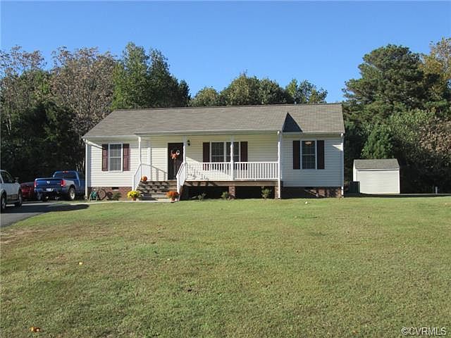 Awesome ranch only 2 years old!! This great one level living home is situated on a acre plus lot. It features a Great Room open to the kitchen. The kitchen has beautiful wood cabinets. There is a Master Suite on one side with 2 other spacious bedrooms on the other side! This home is located only a few minutes to Interstates 295 & 64. There is a fenced rear yard for your pets and a nice deck overlooking wooded privacy! Toolshed conveys as well!!