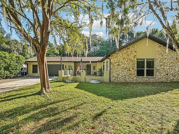 Welcome to this stunning 3-bedroom, 2-bathroom home in the heart of Ocala, Florida, offering 1,848 square feet of thoughtfully designed living space. A 2.5-car garage provides ample room for vehicles and storage. Step inside to discover vaulted ceilings with exposed wood beams that draw your eye to the striking stone fireplace—the centerpiece of the living area. The family room mirrors this elegant style, creating a warm, inviting space perfect for gatherings. The open floor plan flows seamlessly into the kitchen, featuring a large center island with a wood countertop, granite counters on the main surfaces, stainless steel appliances, a new dishwasher, double oven, and built-in microwave—ideal for cooking and entertaining. The primary suite offers a serene retreat with an en suite bathroom and a walk-in shower, while the generously sized laundry room can easily double as an additional living area, home office, or hobby space. French doors lead to a covered back porch overlooking a spacious, fully fenced backyard, perfect for outdoor living. Set on over a quarter-acre lot, this home combines privacy with convenience. Enjoy close proximity to grocery stores, restaurants, conservation areas, and easy access to highways, making it simple to experience all that Ocala has to offer. This residence perfectly blends character, functionality, and location, offering a comfortable, stylish, and versatile home ready for your next chapter. Mortgage savings may be available for buyers of this listing.