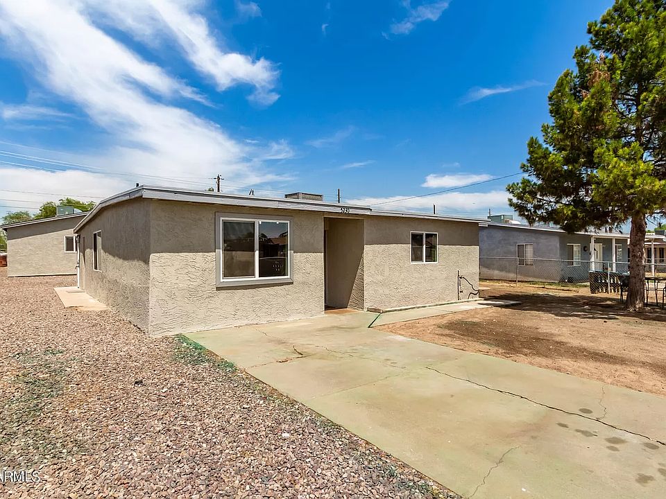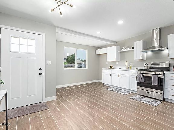 This is a beautifully remodeled 3-bedroom home, complete with a low-maintenance front yard and backyard. As you step inside, you'll find a spacious great room featuring elegant wood-look tile flooring, a neutral color palette, and upscale ceiling fans, creating a welcoming and stylish atmosphere.