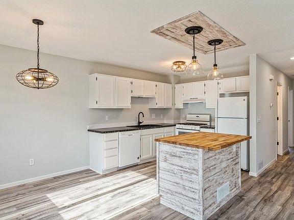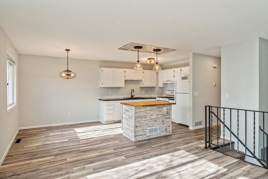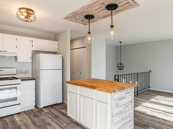 Updated twin home offers a main floor living room with new flooring, fresh paint, a casual dining room located off the open kitchen with white cabinets, large center island, and updated light fixtures. Main floor bathroom has recently been remodeled, two ample sized main floor bedrooms with new carpet and paint. The lower level provides a walkout family room and a third bedroom. Large laundry area and a rough in for a future bathroom. The two-car attached garage provides plenty of room for cars, bikes, or other items. Relax and enjoy the back yard and patio this property offers.