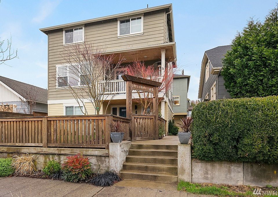 Thoughtfully designed 3 bedroom 2007 townhouse, still looks current. Open floor plan with sunny interiors, spacious kitchen, SS appliances, fireplace and AC. Quality finishes, VG fir doors, hickory floors & fresh paint/carpet. 2 beds up with ample closet space & big bath. Lower level bed/office has access to fenced yard/private patio. Located on a quiet street, close to West Seattle Bridge & downtown. Walking distance to 2 parks-Longfellow Creek and Camp Long. Big garage plus storage room. Fab!