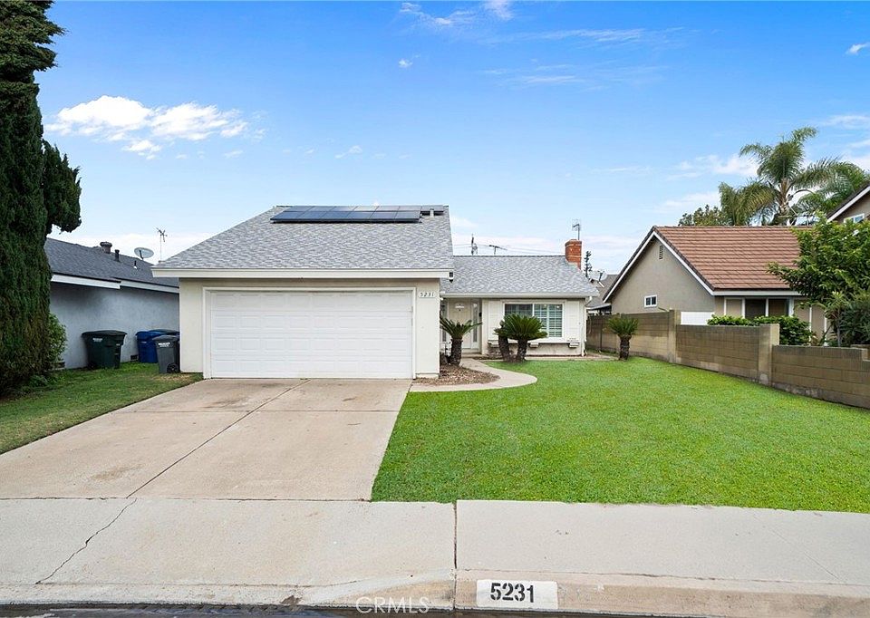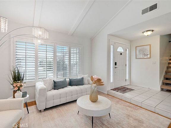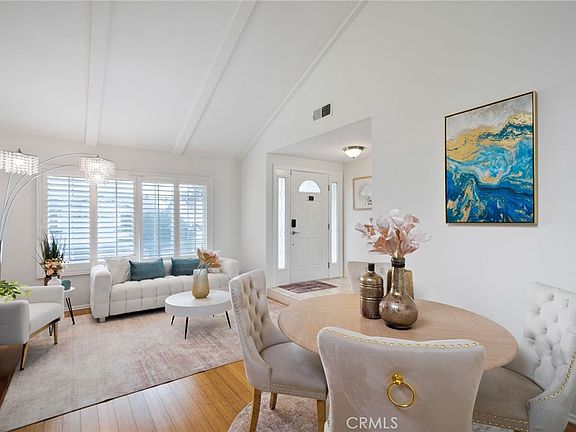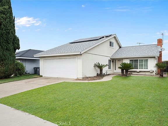 Ideal Interior Street Location: Beautiful two-story home offering 3 bedrooms and 3 bathrooms with showers. The floor plan is designed with a primary suite on each level. This spacious 1,460 square foot features an open and bright floor plan designed with vaulted ceilings on both levels, and hardwood flooring throughout the main level. Upon entry, you’re welcomed by a formal foyer leading to the formal living and dining rooms, both enhanced by high-volume ceilings, a cozy wood-burning fireplace and plantation shutters. The separate family room is also highlighted with vaulted ceilings and upgraded French doors to the backyard. The bright kitchen includes upgraded cabinetry and countertops, recessed lighting and beautiful views of the relaxing pool and spa. Two of the bedrooms are on the main level, including a primary suite with an en-suite bath. The additional primary suite with private bath is on the second level. This suite is highlighted with vaulted ceilings. Additional highlights includes soft water and solar panels with a 25-year panel warranty and lifetime installation warranty – and fully owned. Enjoy a spacious backyard with a refreshing pool and spa, plus fresh landscaping in both the front and back yards. This excellent location is just a short walk to Central Park - one of Orange County’s gems - featuring basketball courts, tennis courts, a softball field, playground, and gazebo. Highly desirable La Palma School District includes access to nationally recognized Oxford Academy.