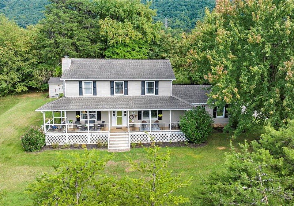 Don't miss this rare opportunity to own this piece of paradise known as Happiness Hill, this 4 bedroom, 3 1/2 bathroom home is on the market for the very first time. Perched atop a serene hill within the desirable Botetourt County, this property offers magnificent mountain views from nearly every room. Imagine a cozy, lived-in home where every corner tells a story. The walls are adorned with family photos, capturing life - unedited. The living room has a comfortable, slightly worn sofa that has seen countless movie nights and heart-to-heart conversations. Embrace the quiet moments on the front porch, where each season's transformation weaves a spell of wonder. Then envision a floor plan that seamlessly blends comfort with formality. As you enter, you're greeted by a foyer that leads into an elegant living room, perfect for hosting guests. More than just a place to live; it's a space filled with love, memories, and the essence of family. It's where everyone feels guarded, cherished, and truly at home.