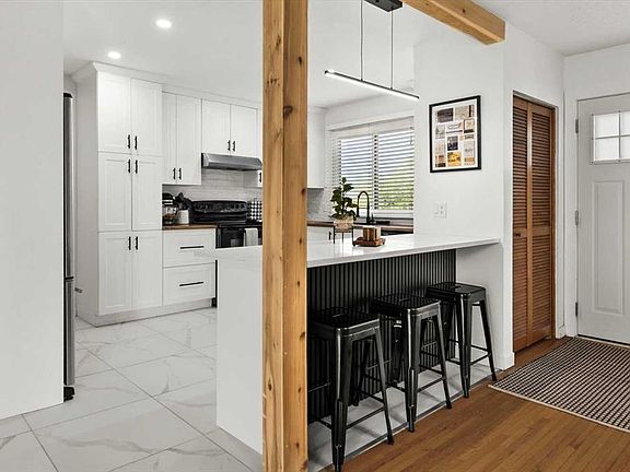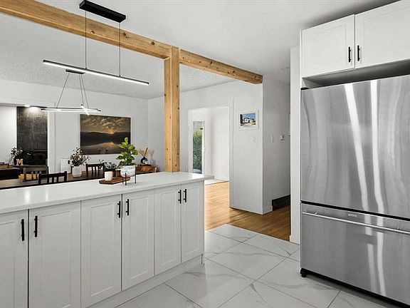 OPEN HOUSE CANCELLED- OCTOBER 12th. Nestled on a prominent corner lot at the top of the hill on 32nd Avenue and 52nd Street, where Montgomery meets Varsity, this thoughtfully upgraded bungalow offers the perfect blend of timeless finishes, modern updates, and everyday convenience. Just a short stroll from the Bow River Pathway, University District, and Market Mall, this location provides the perfect balance of connectivity while retaining the charm and character of a well-established, welcoming neighborhood. In the midst of a competitive market, our sellers were fortunate to secure this exceptional home after connecting personally with its previous owner, who had lovingly cared for it since 1996. Over the past three years, they’ve added their own personal touches, created countless memories, and continued the home’s story of warmth, character, and pride of ownership. Whether you are a developer, young professional couple, or downsizer seeking main-floor living, the possibilities are endless here. With the sellers’ family needs evolving, they are ready to move on and pass this cherished home to its next chapter. From the exterior, crisp white cladding with green accents offers a fresh, inviting presence that complements the home’s elevated setting. Upon entering, you’re welcomed by a bright entryway, while the home’s original hardwood floors lend a touch of classic charm. Opening seamlessly into a generous dining area, this is the perfect setting for hosting dinners or enjoying late-night game nights with family and friends. To the right is the renovated kitchen, featuring marbled tile floors, white floor-to-ceiling soft-close cabinetry, butcher block and quartz countertops, and newer stainless-steel appliances. The elevated family room to the left invites you in with its large windows that fill the space with natural light and a beautifully refinished tile that borders the wood-burning fireplace. At the back of the home, a versatile flex space sits just off the dining area and kitchen, ideal as a reading nook, home office, or casual lounge. Sliding patio doors open directly from here to the expansive backyard, where newly installed sod and freshly planted aspen trees create a private oasis—perfect for hosting barbecues or simply relaxing in the sun. The main level also features an upgraded bathroom and two well-appointed bedrooms. Descending to the basement, you’ll find a versatile third bedroom and full bathroom, outfitted with a Murphy bed, making it perfect as a guest retreat or workout space. The spacious laundry room offers ample room for storage and organization, while the adjoining hobby shop has long been a cherished space for the sellers’ home projects and renovations. Additional updates include a newer furnace, hot water tank, and roof, all providing peace of mind to the next owners for years to come.