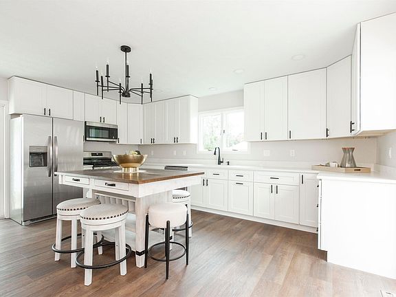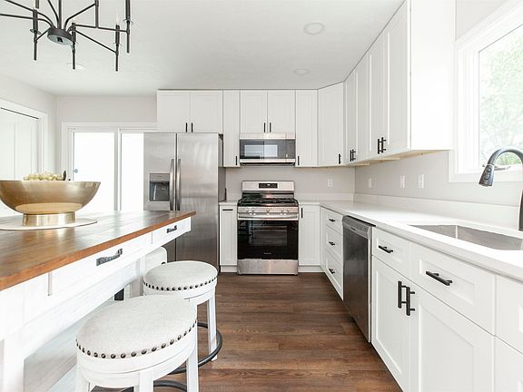 This beautifully renovated brick ranch has an open floor plan and abundant storage space. Enjoy the convenience of a 2-car attached garage plus an additional oversized 2-car detached garage with extra space for your workshop or an area to hang out. The detached building is 26x48 and includes a new garage door and opener! The basement offers an enclosed laundry area and includes an egress window for a 4th bedroom and plumbing for another bath. So many updates to appreciate, including a master bedroom with a luxurious ensuite including double sinks. The stunning luxury vinyl plank flooring flows throughout the main living floor and new carpets in the bedrooms. You will appreciate this chef's dream kitchen with cabinets lining the entire kitchen, a deep sink that overlooks the back yard, quartz counters, and a pretty chandelier that centers the space. There is more kitchen storage in a pantry and another beverage bar that bridges the living and kitchen area. The great room is vaulted with an updated modern banister and has plenty of sunlight. Some of the major improvements besides a new kitchen and baths include a new roof, siding, HVAC, and well tank. This home is move in ready for you with new paint and light fixtures throughout. The backyard is fully fenced and has two patios. Located in the desireable PHM neighborhood and just minutes to shopping. You need to see this one, Michiana - it's a beauty!