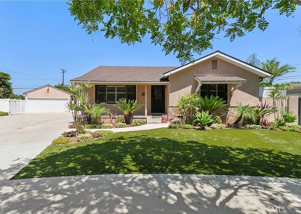 This is a RARE opportunity to purchase a beautiful home, on a large lot with a 4-car garage! This homeowner has meticulously gone through the entire home from top to bottom over the years and now it is practically maintenance-free! The roof is a 50-year roof (the house roof was done in 2000 and the garage roof in 2020). The rain gutters drain directly into the drainage system, the automatic sprinklers are underground, and the yard is designed so there is no standing water on the premises. The entire exterior was completed with stucco, including the window frames (exterior only) to prevent wood rot or future termite damage. The eaves were recently painted, the HVAC system has newer duct work, the AC condenser is a 5-ton Carrier that was replaced in 2022, there is a tankless water heater, solar-powered attic fans, a built-in surround sound system in the family room, and so much more! The current owner is the second owner, purchasing the home when it was just 10 years old. Over time the owner has added a family room, remodeled & expanded the kitchen, remodeled and expanded the primary suite to include its own private bathroom, remodeled the hall bathroom, refinished the wood floors, upgraded the windows, upgraded the electrical panel, and upgraded the plumbing to Copper. Just as the outside was meticulously completed, so was the inside. The interior features beautiful hardwood floors, smooth ceilings, custom crown molding, baseboards, and recessed lights. However, some will still think the best part of the house is the 4-car garage with a workshop area! This garage is huge and someone will go bananas for it! You have got to see this house!