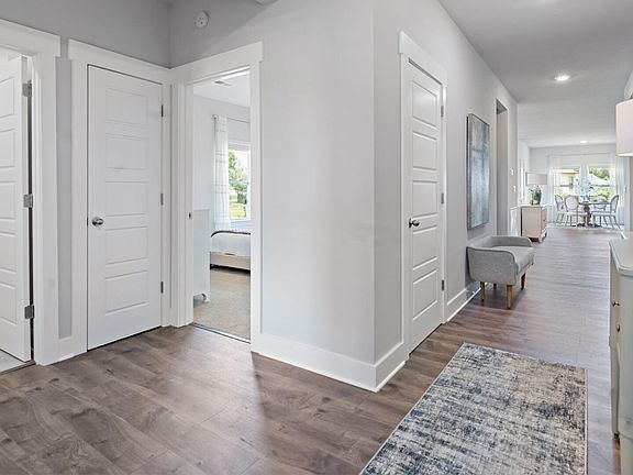 Retreat to the luxurious master suite with a spacious bedroom, soaking tub, and separate shower. Additional bedrooms offer versatility for a home office or guest room. Mohawk RevWood flooring in main areas adds elegance and durability, while carpeted bedrooms offer warmth. Stylish tile adorns the bathrooms, enhancing the home's overall aesthetic.