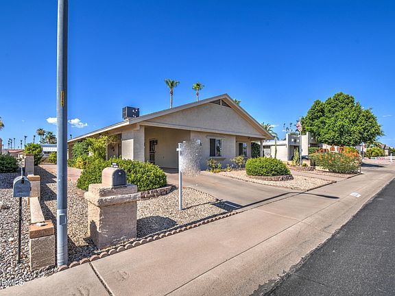 Don't miss the opportunity to live in the Apache Wella Community. This manufactured home was completely rebuilt in 1998 adding 796 sq ft and transforming it with the high-quality materials of a site-built home. Featuring a stucco exterior, covered patio, and entryway all under an asphalt shingle roof, it offers both charm and durability. Inside you will find three bedrooms, an office, and two bathrooms. The open floor plan includes an eat in kitchen, living room and family room. The main master bedroom boasts a large a large walk closet and laundry room. Additionally, there is a workshop and an additional outside storage room. The yard is beautifully enclosed with a low wall surrounding the entire property. Apache Wells is a 55 plus community with many varied activities for everyone.