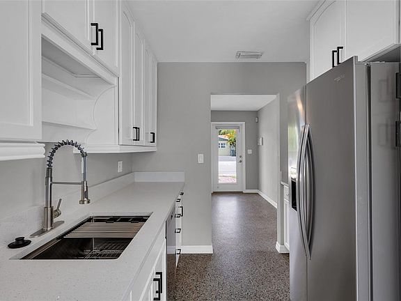 Imagine cooking in your new kitchen, featuring stunning quartz countertops and brand new Whirlpool appliances. Enjoy the warmth and elegance of beautifully restored terrazzo floors throughout. With a brand new natural gas stove & water heater, along with impact doors & windows you'll benefit from efficiency, reliability & security. The updated bathroom offers a refreshing retreat, while the fenced yard provides privacy for outdoor gatherings. Included is brand new washer & dryer!