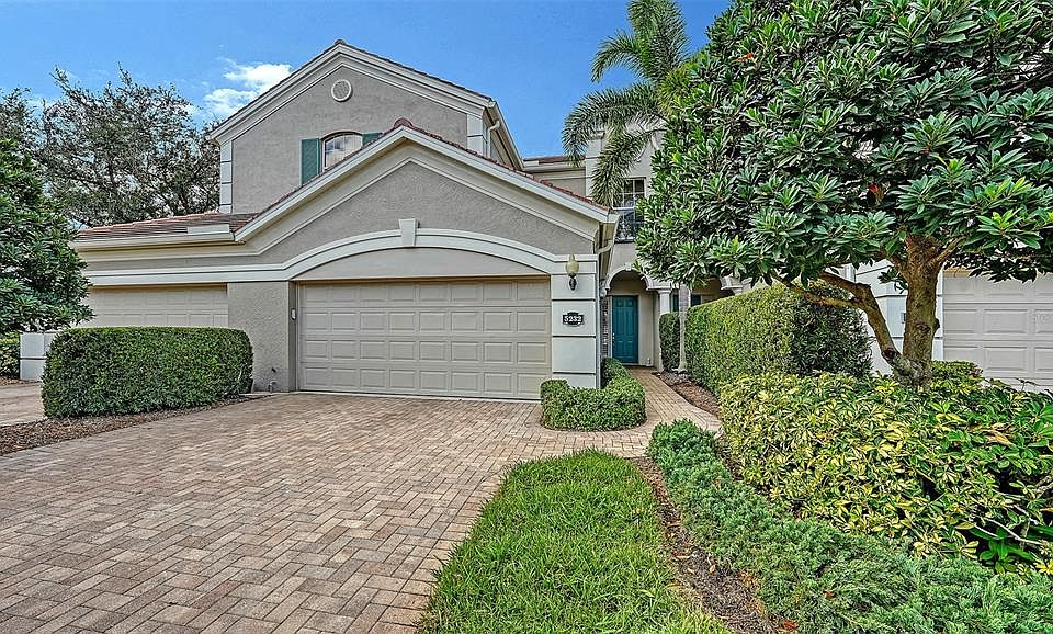 Exceptional water views from this rarely available ground floor condo with attached 2 car garage. 2 generous bedrooms plus an office with 2 full baths. Beautiful tile floors throughout main living area. 2 year old AC & new tankless water heater. Kitchen features wood cabinets, granite counters & newer stainless appliances. Botanica is the ultimate in maintenance free living. The fee includes: all exterior maintenance, cable TV, water sewer, exterior insurance, beautiful community center, 2 heated pools, state of the art fitness center & updated clubhouse. This exclusive gated community is conveniently located in the heart of Palmer Ranch near shopping, Legacy bike trail & a short drive to world famous Siesta Key Beaches.