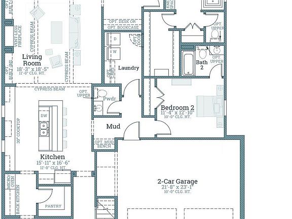 - Breakfast Bar, Ceiling 9'+, Beamed Ceilings, Ceiling Varied Heights, Crown Molding, Pantry, Primary Closet