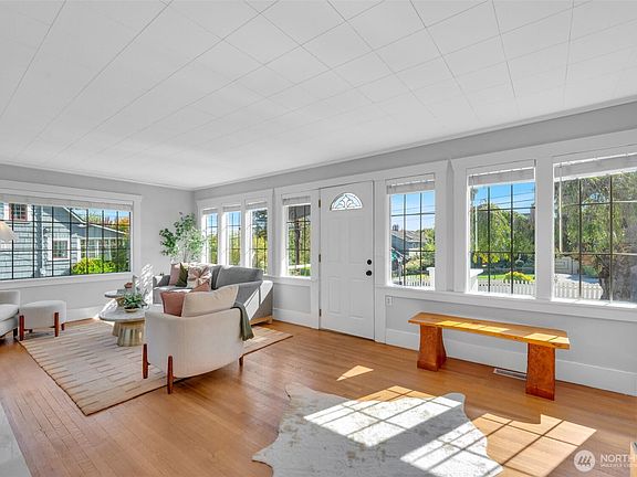 Explore this charming 1922 Craftsman home offering views of Mt Rainier and LK WA. Enjoy timeless elegance throughout, featuring leaded-glass windows that fill the home with natural light, beautiful oak hardwood floors, and a cozy gas fireplace. The updated kitchen seamlessly connects to the dining area, making it perfect for entertaining. Up top, you'll find three bedrooms—one ideal for a home office or easily convertible into an additional bathroom. Located on a fenced corner lot, the yard boasts garden beds, a patio, and plenty of space for outdoor activities. Conveniently close to Seward Park, Martha Washington Park, and the lively shops and eateries of Columbia City.