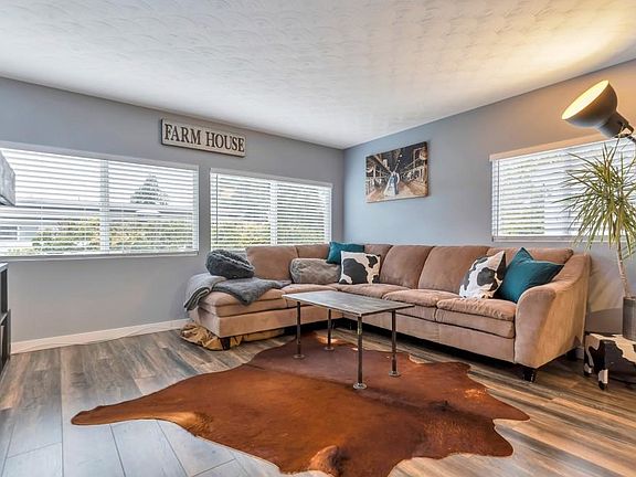 Are you a first time home buyer looking to get into the market? Look no further! Spacious completely renovated mobile in Gordania Estates, a lovely quiet park in the country, only 10 minutes from town. This stunning home is 1,400sqft, has 3 bedrooms, a den, and 1 full bathroom. Bright spacious living room with a beautiful shiplap fireplace, gourmet kitchen with all new stainless steel appliances, huge laundry room with a sink, new washer/dryer and laminate flooring throughout the home. Massive yard with parking for the whole family, and a 10x20 storage shed. The list goes on! Pad rent is $442, 2 pets, no size limit. Book your private tour today!