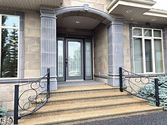 Exquisite Custom Executive Walkout Bungalow in a Prestigious Setting! This remarkable residence showcases a spacious living room with a cozy gas fireplace and a chef’s kitchen adorned with rich walnut cabinetry, granite, island & pantry, flowing into the dining area with access to your covered patio. Designed for year-round enjoyment, the patio features slate floors, fireplace, retractable screens, dedicated BBQ area & stairs to your private backyard retreat. The primary suite offers a custom WIC & spa-inspired 5-pc ensuite. Also on the main: a second bedroom, den, 3-pc bath & mud/laundry. The walkout level boasts a grand entertaining space with wet bar, games area, gym with steam shower, hobby room, 2 additional bedrooms, 4-pc bath, second laundry & access to the covered patio surrounded by immaculate, low-maintenance landscaping. Premium finishes include walnut cabinetry, granite counters, American cherry hardwood, A/C, triple garage, RV parking & shed. Timeless elegance meets exceptional craftsmanship!