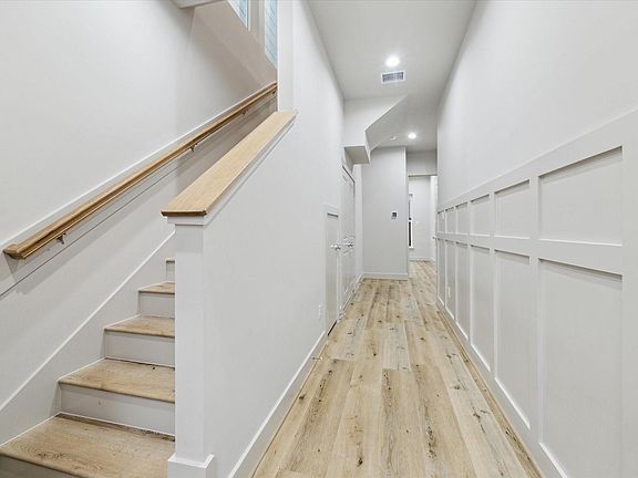 Wood floorsMud alcoveSnow white quartz counterIncredible spa bathroomSorning ceilingsHuge closetSolid wood cabinets