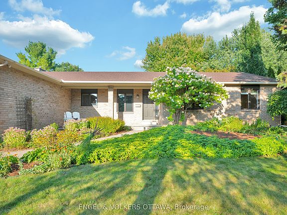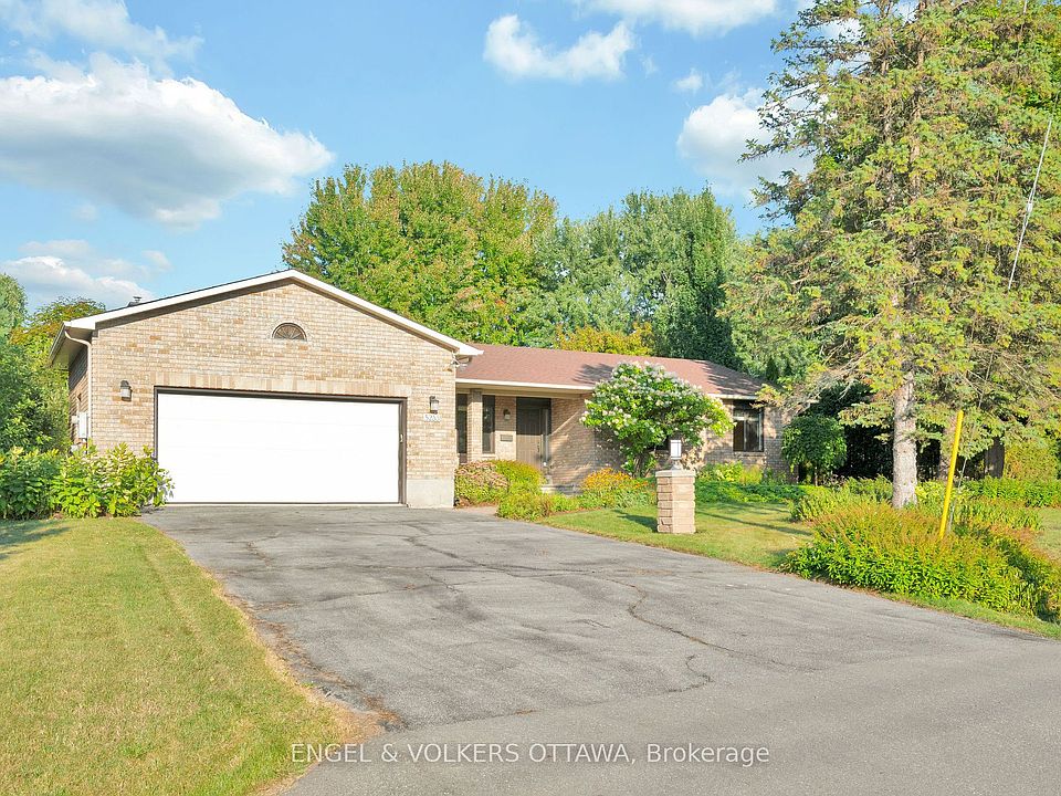 Here is rare opportunity to own a 1900+sqft custom Bravar built bungalow with a double car garage in the exclusive neighbourhood of Manotick Island. Located on just under 0.5 an acre with lush gardens and a large deck with a hot tub and gazebo - this home is perfect for entertaining. The backyard offers direct South-Western exposure with lots of space for an in ground pool. The main level is perfectly laid out with living and dining on one side, and bedrooms on the other. The updated kitchen (2008) offers a gas stove, tons of cupboard space and stainless steel appliances. Off the kitchen is a formal dining room, and living room with a garden view. There is also a bonus family room with a gas fireplace (as-is) and sliding patio door leading to the backyard. The bedrooms are located in a separate wing of the home. The primary has a walk-in closet and en-suite bathroom. Both of the other rooms are a good size with their own full bathroom off the hallway. Huge unfinished basement offering endless potential for a growing family with a bedroom or office already framed. Double car garage with EV charger and built in storage. Fantastic, low turnover neighbourhood with tons of amenities nearby including Manotick's best dog park (David Bartlett Park), Walking trails, Rideau River, Parks, Top Restaurants and Highly Rated Schools. Water system (2024), Partial Roof Re-Done (2023). Fantastic location and TONS of potential! OPEN HOUSE SUNDAY 10AM-12PM!!!