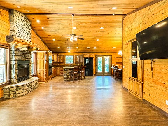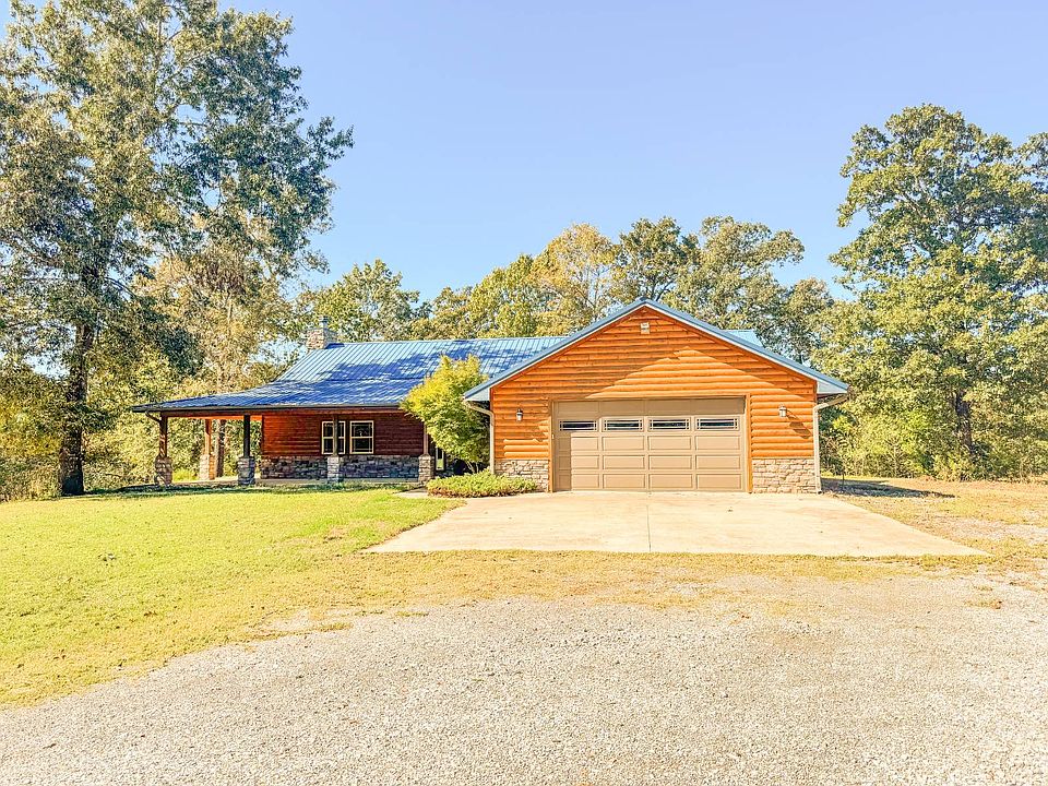 Nestled on 10± wooded acres, this stunning three-bedroom, two-and-a-half-bath home blends rustic charm with modern comfort. Built in 2013, the 1,996 sq. ft. residence features a log-sided and stone exterior, creating the perfect retreat in the heart of nature. Inside, you'll find warm wooden walls, a wood-burning fireplace with a real log mantle, and even a decorative indoor tree with natural branches that adds a unique touch of character. The open living and dining areas are both elegant and inviting, ideal for gatherings or quiet evenings by the fire. The kitchen is beautifully designed with granite countertops, an all-copper sink, and custom cabinetry with pull-out shelving, offering both beauty and functionality. Two of the bedrooms are comfortably carpeted, while the primary suite features a Winchester Big Daddy 2 gun safe, walk-in closet with shelving and a built-in lazy susan, and a spacious bath with a stand-up shower. A large attached two-car garage provides attic access and extra storage, while underground electricity and rural water add modern convenience. Outdoors, you'll enjoy a mix of mature timber and open grassy areas-home to abundant wildlife, including whitetail deer, squirrels, and rabbits, all native to the scenic region. Relax or entertain on the three-sided wraparound porch, perfect for sipping your morning coffee, hosting friends, or simply soaking in the peace and quiet of country living. Every detail of this home has been thoughtfully designed to offer both comfort and practicality-from the well-planned kitchen to the organized closet spaces-creating a welcoming environment that's as functional as it is beautiful. Whether you're looking for a serene homestead or a hunter's paradise, this property delivers the best of both worlds.