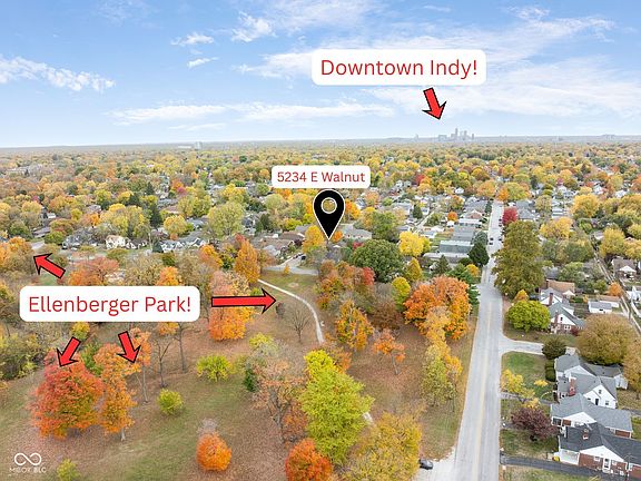 Live in the heart of historic Irvington-one of Indy's most beloved and walkable neighborhoods-just steps from 42-acre Ellenberger Park. Enjoy front-row views of this iconic neighborhood. You'll love having instant access to tree-lined trails, tennis/pickleball courts, an Indy Parks pool, playgrounds, & year-round community events right outside your door. This 100-year-old classic beautifully blends timeless craftsmanship w/ modern updates. The completely remodeled 2023 kitchen features stylish upgraded cabinetry, fixtures, and flooring-an elegant nod to today's design trends while honoring the home's original character. Rich hardwood floors throughout, complemented by a dining room with original built-in drawers that add both charm and function. Relax on your sprawling covered front porch-perfect for morning coffee or evening sunsets overlooking the park. The bright, dry basement offers endless potential for finishing, while the two-car detached garage and fully fenced yard provide everyday convenience and privacy. Full bath features subway tile. This home is clean, cheerful, and truly move-in ready! This Irvington gem offers a rare combination of history, location, and lifestyle. Bikers and nature lovers will appreciate the quick access to the Pennsy Trail, part of Indiana's 70-mile National Road Heritage Trail. Experience park-side living with a century of character and every modern comfort-welcome home to Ellenberger Park living at its finest.