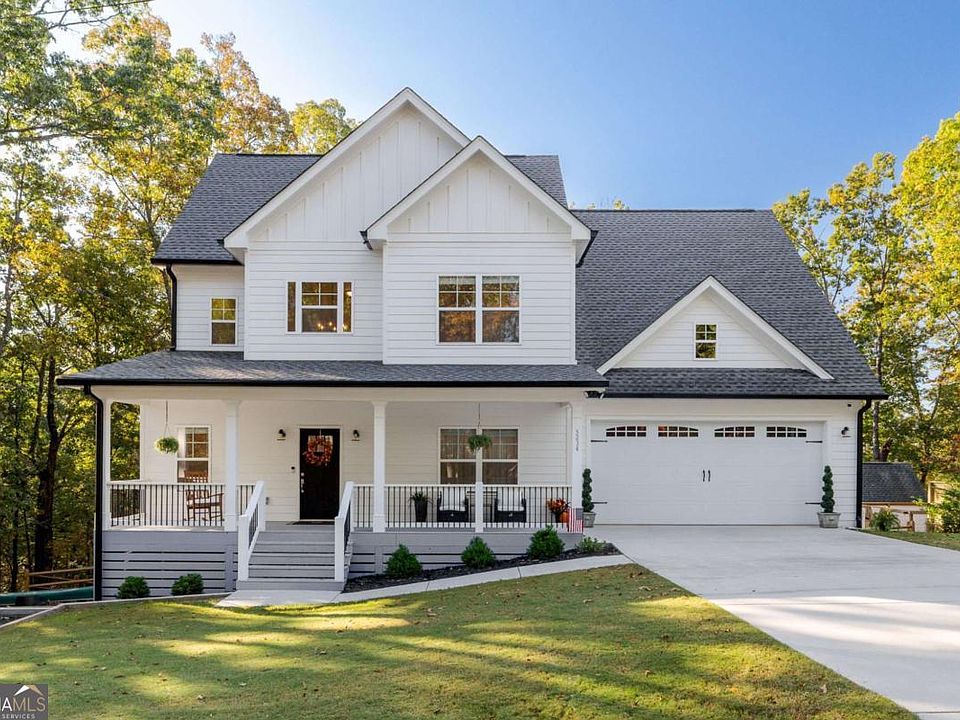 Imagine starting your mornings with the soft sound of birds and ending your evenings under a sky full of stars. Just minutes from Lake Lanier, this 2021-built home offers the relaxed rhythm of lake life - whether you love fishing, kayaking, or sunset cruises on the water. Set on a full acre that includes the adjoining lot at 5240 Laurel Lane, this property combines modern comfort with space to breathe. The light-filled kitchen is the heart of the home, featuring white cabinetry, granite countertops, stainless appliances, and a spacious pantry with room to add a mudroom. It opens to a comfortable family room overlooking the fenced backyard, perfect for casual gatherings after a day on the lake. Upstairs, the primary suite feels like a private retreat with its custom walk-in closet and spa-style bath. Two additional bedrooms and an oversized laundry room keep life organized and easy. The unfinished terrace level, already framed and stubbed, offers endless possibilities for a guest suite, gym, or media room. Step outside and you'll find spaces designed for connection and calm - a rocking-chair front porch, multi-level decking with seasonal lake views, and a custom garden shed that could be a studio, workshop, or peaceful escape. Recent updates include fresh interior paint (2025), a multi-level deck and walkway to the garden shed (2023), whole-house well water filtration with UV light (2022), and terrace-level waterproofing (2022). Life here is about savoring the outdoors and being just moments from Lake Lanier, Don Carter State Park, the Atlanta Botanical Gardens Gainesville campus, and north Georgia hiking trails. Convenient to the new Publix at Riverbrook Village, yet a world away from city noise; this is lake living at its best.