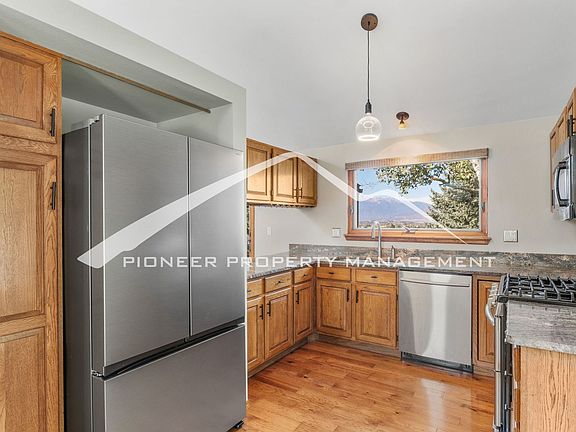 Enjoy stunning west views, above the treetops, nestled in the center of the city in a peaceful and mature neighborhood. Updated 4-bedroom, 3-bath tri-level home. Inside, you'll find freshly painted walls, new carpet, and luxury vinyl plank flooring throughout. The inviting tile entry opens into a spacious family room featuring skylights and a cozy gas fireplace. The kitchen is equipped with stainless steel appliances, including a gas range. Sliding doors lead to a covered deckperfect for relaxing or entertaining while taking in the mountain and wildlife views.