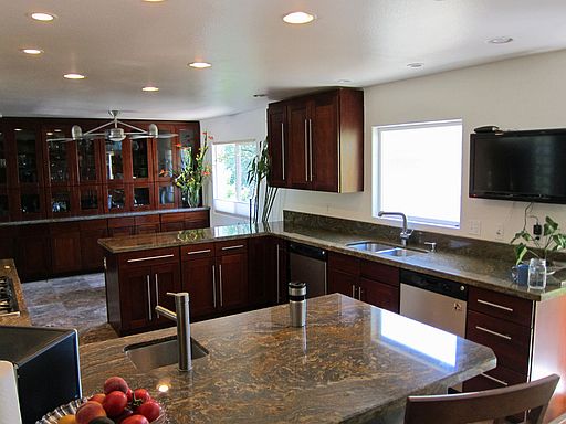 Great Day Ranch with Super Style Remodel, Massive Size, Gourmet Kitchen for Entertaining, lots of Granite & Tile work, Newer Windows, Roof & Kitchen Appliances, Large attached Shop or could be used as a 3rd car garage, 12 X 28 Covered Patio, RV Parking and More on a half Acre Lot convenient to shopping and schools, Perfect Home for extended family and location for a Home Business!!!