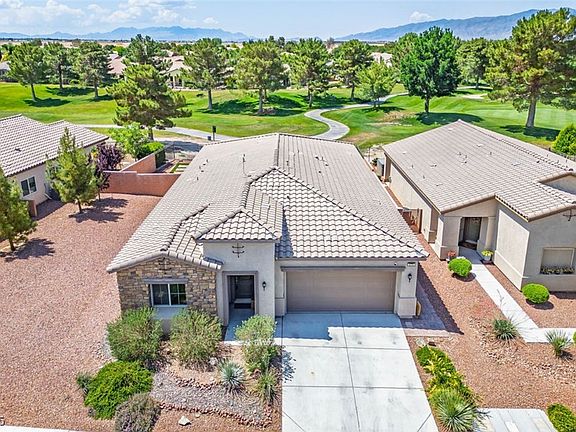 PRICED TO SELL! Perfectly situated behind the Green on Hole 11, this beautiful 2,100+ SF Single Story is located in the desired Mountain Falls Golf Estates is TURN KEY & ready to go! The backyard offers a relaxing atmosphere w/ beautiful views, professionally designed low maintenance landscape & HUGE covered patio w/ multiple fans to keep you cool during those hot days. Other Highlights include, Den/4th bed > Open floorpan w/ a spacious living room > Chef’s kitchen w/ large island > SS appliances > primary suite separated from others > private putting green & more! Amenities include pool, spa, fitness center, golf course, club house & separate restaurant all just minutes from your door. This home is the perfect blend of comfort & style in one of Pahrump’s most desirable neighborhoods & is the first community you’ll see coming into town from Vegas.