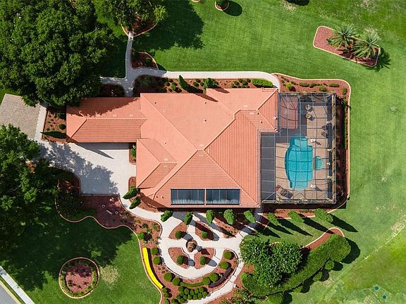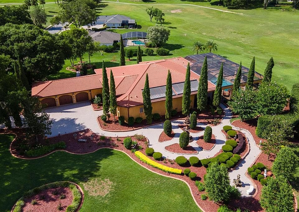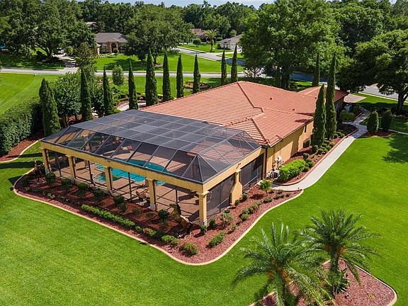 ELEGANT "TUSCANY ESTATE" POOL HOME in a Prestigious Guard Gated Golf Community! Welcome to this exceptional 4-bedroom, 4-bathroom custom residence located on a beautifully manicured 1.4-acre double lot on the golf course! From the moment you arrive, you’ll be captivated by the meticulous attention to detail—as you stroll through the professionally designed landscaping with Vista Pro grass and multi-level gardens to the grand 22-foot fountain, and extensive custom outdoor lighting. Perfect for entertaining, the screened lanai boasts an outdoor fireplace, full summer kitchen with under counter ice maker, surround sound system, custom lights, and a stamped concrete floor. Enjoy year-round luxury in the saltwater heated pool and spa for effortless hosting. Indoors, your private home theatre awaits, featuring tiered seating with 8 leather recliners, an 8x5 projection screen, and high-end audio-visual equipment that conveys with the home. The gourmet kitchen is a chef’s dream, offering granite countertops, center island, double wall ovens, a 6-burner Thermador gas range, trash compactor, dishwasher, and under-sink reverse osmosis system plus a large walk-in pantry! The open-concept great room includes a full bar with ice maker, trey ceilings, and detailed crown molding. You will love having 8-foot doors throughout. Retreat to the expansive primary suite and bath complete with an electric fireplace, jetted tub, oversized walk-in shower, dual custom walk-in closets and vanities. The second private en suite guest room includes its own bath and walk-in closet. Guest bedroom three is oversized share the 3rd guest bath! The dedicated office with custom built-ins can easily serve as a fourth bedroom. No worries if the electric goes out with your own Whole-house generator with a 500-gallon buried propane tank. Endless hot water with the commercial-grade tankless water heater (installed 2024). More upgrades to include the Water softener and whole-house filtration system. Two HVAC units (replaced approx. 7 years ago). Huge 3-car garage with epoxy floors, insulated doors, custom cabinetry, and climate-controlled walk-in storage! Additional parking pad for two vehicles. Every detail of this home reflects exceptional quality and luxurious living. A rare opportunity to own a showpiece in one of the region’s most sought-after communities. Clubhouse membership is optional for additional fees will give you access to the marina, RV storage, community pool, fitness room, tennis, pickleball, activities and more. YOUR RESORT STYLE LIVING AWAITS...CALL TODAY!