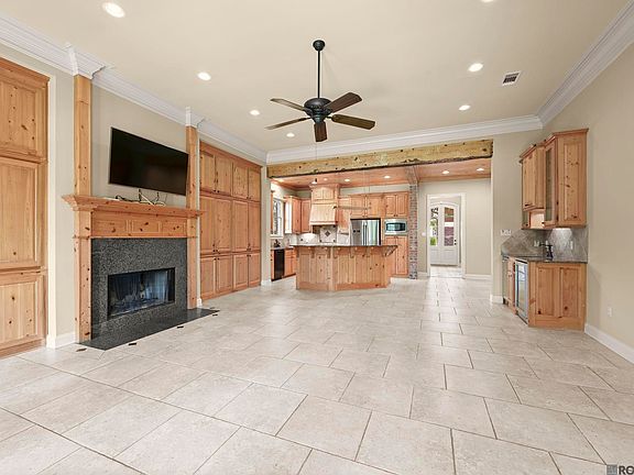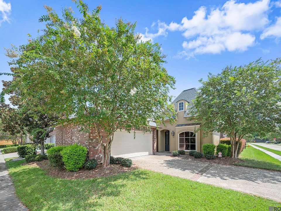 So Many Custom Details in This Stunning Home! Welcome to this beautifully designed home, full of thoughtful touches and timeless character. Sitting gracefully on a corner lot in a gated community, this home blends elegance with comfort, offering the perfect setting for both everyday living and entertaining. Step inside to find triple crown molding, rich wood accents, and charming brick details that give each space warmth and personality. The formal dining room, highlighted by a chandelier and grand molding, sets the stage for memorable gatherings. The heart of the home is the open kitchen and living area—expansive yet cozy. The kitchen boasts a wood-beamed ceiling, brick accents, custom cypress cabinetry, granite countertops, a large island with breakfast bar, tile backsplash, gas cooktop, wall oven, refrigerator, and double sink with a lovely view. A wet bar with ice maker and beverage fridge makes entertaining a breeze. Your primary suite is a private retreat featuring a spacious bedroom filled with natural light. The spa-like bath offers double vanities (including a sit-down area for hair and makeup), oversized walk-in shower, large soaking tub, water closet, and generous walk-in closet. Guest rooms are tucked away separately, providing comfort and privacy for family or visitors. Additional highlights include a laundry room with washer/dryer and built-in desk area near the garage, plus thoughtful storage throughout. Step outside and relax on the large rear patio with outdoor kitchen—complete with a brick bar, built-in grill, beadboard ceiling, outdoor speakers, and fans. The fully fenced backyard with iron rails adds both beauty and peace of mind. This sought-after gated subdivision offers sidewalks, open common areas, and more—perfect for an active and connected lifestyle. Low maintenance living close to both interstates.