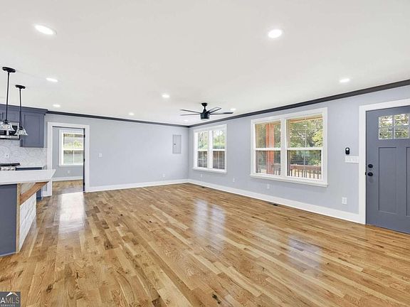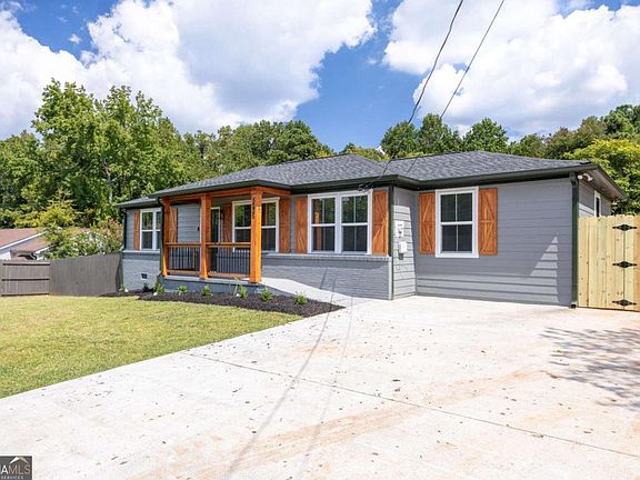 Fully renovated ranch in prime Mableton location! Stunning 4-bedroom, 3-bathroom home, thoughtfully renovated from top to bottom to blend modern style with everyday comfort. Situated on a level lot with a fenced backyard, this home offers low-maintenance living in a convenient and desirable location. Step inside to discover hardwood floors, crown molding, and neutral paint throughout the open-concept living area, where abundant natural light shines. The brand-new eat-in kitchen features an island, soft-close cabinetry, and new stainless steel appliances. The primary suite has a charming beamed ceiling, custom walk-in closet, and a luxurious ensuite bathroom boasting a double vanity, tile shower, and soaking tub. The thoughtful roommate-style floorplan offers two bedrooms with walk-in closets that share a full bath, plus a third bedroom with its own private bath-ideal for guests or multi-generational living. Enjoy outdoor living on the wood deck overlooking the fenced backyard, with plenty of space for pets, play, or gatherings. Additional highlights include a new detached two-car garage, large driveway with ample parking, and all new systems-HVAC, roof, water heater, vapor barrier, and windows-for total peace of mind. Located just minutes from shopping, restaurants, and local attractions, you can walk to concerts and events at Mable House Barnes Amphitheatre. This home truly combines style, convenience, and a vibrant lifestyle. Square footage is approximate.