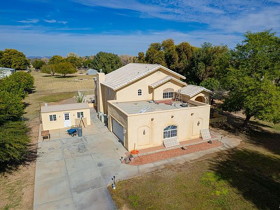 This exceptional 3200 square foot 4 bedroom 3 bath 2 story residence boasts a pool and spa, nestled on 2.5 acres. The ranchette style home features access to the front of the property and the alley way to the back end, with flood irrigation. Interior highlights included vaulted ceiling, expansive bedrooms, and a master bedroom with an enclosed upper patio offering stunning views of the backyard and pool oasis. The property also includes a 20x10 workshop and storage enclosure, located at the back of the property. New interior and exterior paint. A significant advantage of this rare property is its connection to Southwest Gas. This exceptional property has everything one could desire, and is priced competitively.