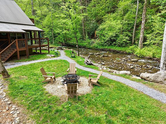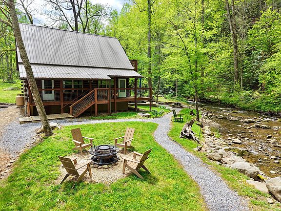 Here is your chance to own a creek front VRBO/Airbnb only 15 miles from Gatlinburg and 23 miles from Dollywood. Whether you are sitting on the wraparound porch, the upper balcony, beside the fire pit, in the hot tub or even inside with the windows open the sound of Dunn Creek never disappoints. It is the kind of noise that washes away the troubles and put your mind at ease! This log cabin is currently on an active short term rental program with bookings already in place. You can keep it that way, manage it yourself or use it as your own personal home if you chose not to rent it. With over 1,500 sq ft of fully furnished space it is ready for you to hit the ground running. It also includes 1.13 acres of land that houses a storage shed with electric. The mountain theme is maintained throughout even encompassing the Multicade arcade gaming system. This home was built only five years ago and the property taxes are currently under $1,000 annually. Buyer and/or their agent to verify all information. Be sure to reach out and schedule a showing to get your worries washed away. Drone photography used in the listing.