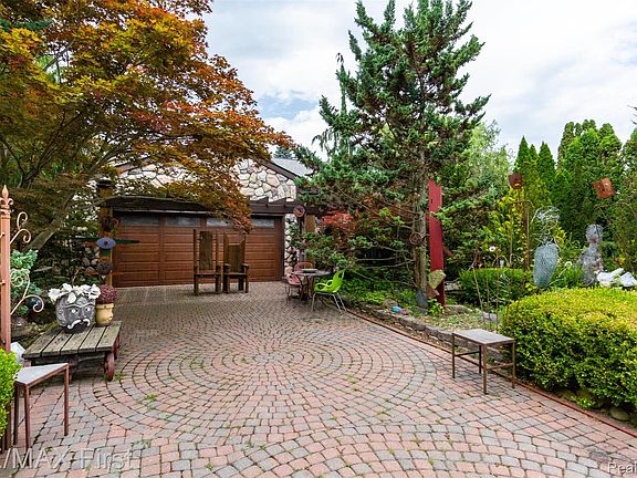 Unique property setting for nature lovers featuring a rustic contemporary home. A unique 3 bedroom, 2.5 bath contemporary style home, designed and owned by a local artist. This is a one-of-a-kind home with its open floor plan that is filled with light and seamlessly connects your indoor living to the stunning outdoor spaces. Nested in the city on a beautifully landscaped ground. Wander along brick paver paths that wind through lush landscaping, tranquil sculpture gardens and charming arches and pergolas. Every inch of the grounds invites peace, reflection and connection with nature while you're in the heart of West Bloomfield close to all the conveniences you desire. Offering new windows, new roof and 2 new furnaces, new air conditioner, new water heater and the list goes on. Whether you're looking for a serene retreat, entertaining space or simply a home that reflects your unique style -this private art filled oasis is ready to welcome you. Contingent on seller closing on new home. Purely unique for those with unique taste in a home.