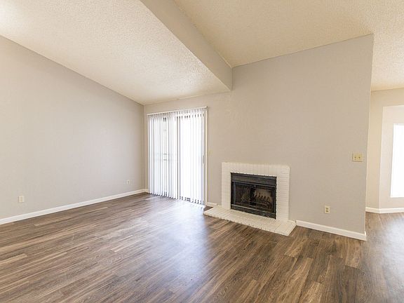Beautiful 2 bedroom 2 bathroom apartment with open & airy floorplan, vaulted ceilings, and a fireplace. This unit has been updated with wood-look laminate flooring throughout and white cabinets in both bathrooms and kitchen. The kitchen also has updated appliances including a stainess steel refrigerator and range/oven (not shown in photos). Spacious master bedroom with tons of storage/closet space! In unit laundry for added convenience. Enjoy the community amenities such as the stunning pool, hot tub, children's playground, and walking paths.