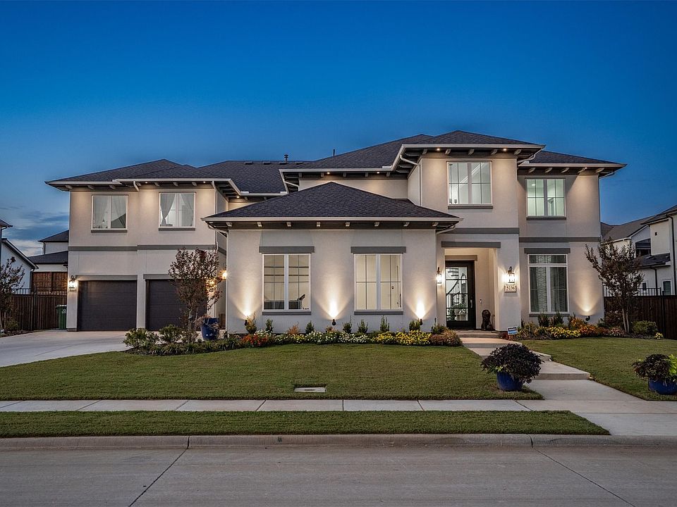 Welcome to this exceptional 2024 Toll Brothers estate in Copper Canyon, adjacent to Flower Mound—where elegance, comfort, and thoughtful design come together beautifully. This spacious 5-bedroom, 5.5-bath residence with two 2-car garages offers exceptional craftsmanship and a layout designed for modern living, all set in a community known for its charm and serenity. Step inside to discover an inviting open floorplan with soaring ceilings, filled with natural light. A private office at the front of the home provides the perfect space for work or study, while the luxurious owner’s retreat offers a peaceful escape with two generous walk-in closets and a spa-inspired ensuite bath featuring dual vanities and an oversized walk-in shower, plus direct access to the laundry room. A secondary bedroom with its own ensuite bath on the main level is ideal for guests or multigenerational living. At the heart of the home is the chef’s kitchen, showcasing a 6-burner gas cooktop, double ovens, a convenient microwave drawer, walk-in pantry, and large center island perfect for gathering. Entertain with ease in the elegant dining area with a dedicated wine room—an impressive feature that adds a touch of sophistication. A well-placed half bath serves guests conveniently on the main floor. Upstairs, three additional bedrooms each include walk-in closets and ensuite baths, offering privacy and comfort for family or visitors. A spacious game room and separate media room provide endless opportunities for relaxation and entertainment. Outside, you'll find a connection for a fountain at the front of the home, and a convenient gas stub on the back patio. With dual staircases and high-end finishes throughout, this home balances luxury and functionality in every detail. Just minutes from top-rated schools, shopping, and dining, this elegant residence offers a sense of community, convenience, and quiet luxury—making it the perfect place to create lasting memories for years to come.