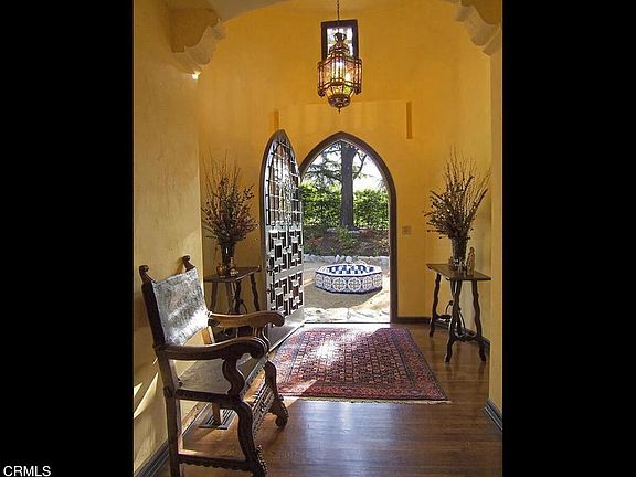 Designed in 1925 by renowned architect Arthur Rolland Kelly as his personal residence, this gracious Spanish Hacienda has been thoughtfully expanded and restored by Michael Burch Architects. Featuring hand-carved beams and intricate stenciling by noted artist Anthony B. Heinsbergen, the home is proudly listed on La Canada's historic property registry.Set behind gates, the property welcomes you with a decomposed gravel motor court and fountain. Inside, a grand entry opens to the formal living room with fireplace and a formal dining room, where French doors lead to a wisteria-draped terrace overlooking the lap pool and spa.The chef's kitchen is outfitted with premium appliances, including a 48' Sub-Zero refrigerator, Thermador Professional Range, Miele dishwasher, and built-in microwave. The residence offers four bedroom suites, including a primary suite with dual bathrooms, as well as a private study with fireplace. A library with its own entrance off the driveway makes an ideal home office.Upstairs, a spacious loft with powder room offers flexibility for an additional office or guest room. The lower level includes a media/playroom with fireplace that can double as a bedroom suite, as well as a separate bedroom with its own entrance.Three terraces showcase sweeping canyon views framed by downtown Los Angeles and Catalina Island in the distance. Nestled in La Canada's Upper Deodar neighborhood, the property is within walking distance of the award-winning Palm Crest Elementary School, and minutes from freeway access, Old Town Pasadena, Downtown LA, and the Burbank Studios. Additional features include 5-zone central air, high-speed internet, and a security system.