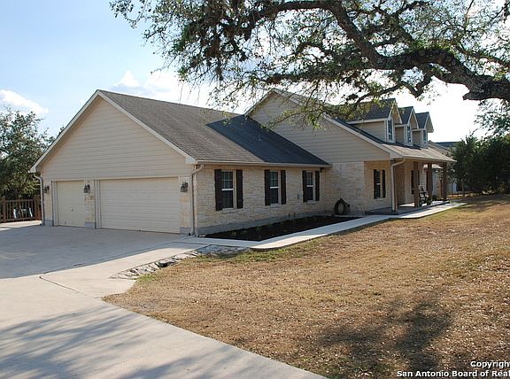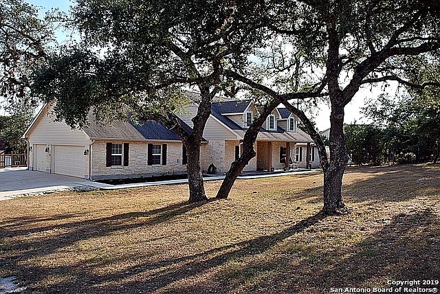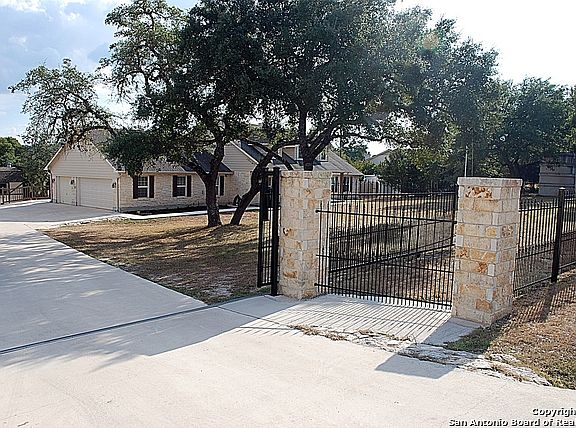 Gorgeous, Well Maintained Hill Country 3 bdrm/3 full baths/3 car garage on 1.37 acres. Gourmet kitchen with granite, S.S. appl's, 42" cab's & W/I pantry. Office and formal dining. New flooring, Crown molding and c-fans throughout. Fire place w/stone hearth and matching stone on bar. Great tiled front porch for your morning coffee . Huge cov'd patio (21x24), perfect for B-B-Q's or just to relax and enjoy the park like setting and watch the wildlife. Coveted Smithson Valley Schools. DON'T MISS THIS ONE.