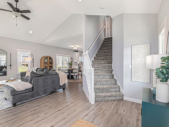 Beautiful 3 bed/2.1 bath home in like-new condition! This crisp, clean home features an open floor plan with soaring ceilings, creating a bright and inviting atmosphere throughout. The stylish kitchen boasts quartz countertops, stainless steel appliances, and a center island that opens to the dining area with a doorwall leading to a brand new paver patio complete with built-in fire pit, perfect for entertaining. The vaulted living room is highlighted by a recently installed cozy electric fireplace for chilly Michigan evenings.Upstairs the spacious primary suite offers a walk-in closet and private bath with dual sinks and walk-in shower.Two additional generous size bedrooms share a second full bath, and the convenient upstairs laundry makes everyday living a breeze.The full basement with egress window is a blank canvas, ready four custom finishes, and the attached 2 car garage adds extra convenience.Nothing to do here but move in and enjoy