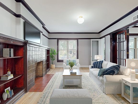 3Bedroom, 2Bath plus den updated condo with Gated Parking! Located within minutes of Hyde Park, Bronzeville & green spaces. Set in a beautiful red-brick building with a welcoming garden entry, this spacious apartment combines timeless architectural details with modern updates - all in an ideal location. A gracious entry foyer with crown molding and hardwood floors sets the tone for this refined home. The sun-filled living room features a stately decorative fireplace framed by custom built-ins and leads to a versatile den through classic French doors - perfect for a home office, library or family recreation room. If a fourth bedroom is desired, the space could easily be transformed to accommodate. The updated kitchen is a standout, featuring quartz countertops, stainless steel appliances, a beverage station, abundant cabinetry, and plenty of space for eat-in dining. Step right out onto a private deck - perfect for grilling, relaxing, or enjoying your morning coffee. The expansive primary bedroom easily accommodates a king-size bed with room for additional furnishings. It connects to an updated Jack-and-Jill bathroom with sleek finishes. A second full bath, also updated, serves the additional bedrooms with style and functionality. Entertain in style in the formal dining room highlighted by a coffered ceiling, or enjoy everyday practicality with a dedicated mudroom and a full laundry room with additional storage - thoughtful touches that enhance daily living. Other highlights include a bright sunroom, gated parking for one vehicle, and easy access to green spaces, and the shops, restaurants, and cultural amenities of Hyde Park and Bronzeville. Classic millwork, high ceilings, and smart design details make this home a rare find that balances character, comfort, and city convenience.