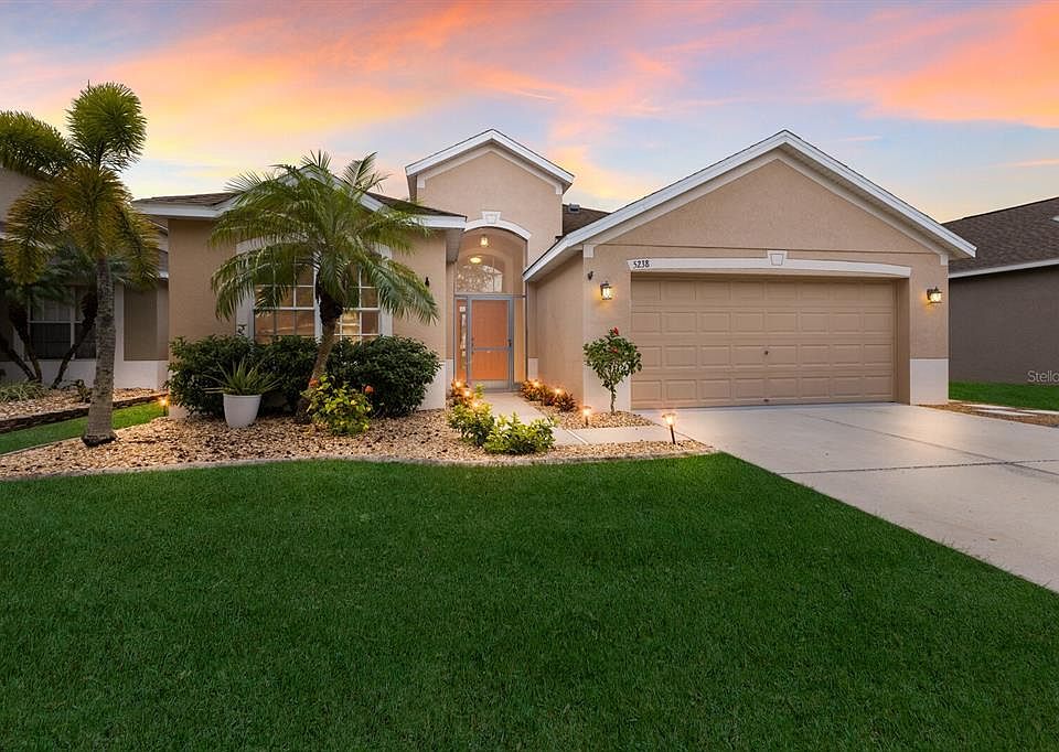 ***ATTENTION: $5,000 Price adjustment and Seller is offering a $5,000 concession for buyers closing costs/prepaids if closed by May 1st, 2025.*** Searching for a home with stunning sunset views? Look no further! Welcome to the peaceful gated community of Braemar, an area that remained unaffected by the recent storms. This beautifully updated 3 bed, 2 bath, 2 car garage home offers the perfect blend of comfort, style, and modern upgrades. The front entry is screened-in to provide extra coverage for your guests and packages. Step inside to find a well-maintained interior with high ceilings and an open floor plan. The spacious, eat-in kitchen features a stylish new backsplash, freshly painted cabinets, solid surface countertops, and other desirable features such as a gas stove. The sizable owner's suite highlights new carpeting (2022) and a sliding glass door that leads directly out to the lanai. The en-suite bathroom has a walk-in shower, dual sinks, a garden tub, and a walk-in closet with custom built-ins! The two additional bedrooms are generously sized, providing plenty of room for larger furniture. The home also boasts a renovated backyard (re-seeded 2025) and plenty of space for outdoor activities. Additional upgrades include a (2023) ADT security system, (2023) washer and dryer, (2023) fence, (2020) water heater, and (2019) roof, ensuring peace of mind for years to come. The highlight of this home is the oversized screened-in lanai, providing a perfect space to relax and enjoy breathtaking lake views and spectacular sunsets. Whether you’re unwinding after a long day or entertaining guests, the lanai offers an ideal setting to enjoy the serene surroundings. Tucked away in the thriving city of Apollo Beach, Braemar offers an exceptional living experience with fantastic community amenities, including a sparkling pool, a fun-filled playground, low HOA fees, and no CDD fees. The location is unbeatable, with a brand-new Publix, shopping centers, and popular restaurants like Circle’s and Finn’s just moments away. Commuting is a breeze with quick access to US41 and I75, putting you within easy reach of the Tampa Airport. Not only is Braemar situated near all the fun and entertainment you could ask for, but it's also perched 13 feet above sea level, ensuring you won’t have to worry about recent storms – adding peace of mind to your ideal location. And let’s not forget, you’re only a half-hour drive from the beach! So grab your towels and schedule a showing today – your dream home is waiting.
