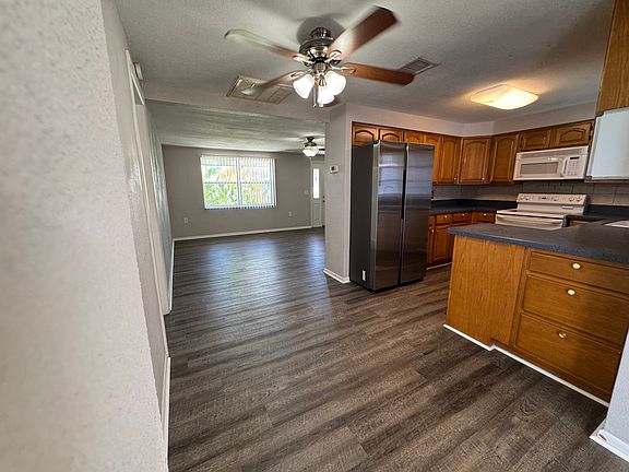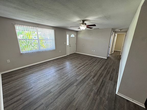 Very nice well kept little pool home. 2 Bedroom/ 1 bathroom perfect for a couple. Extra den/gameroom or formal dining room in back with sliding glass door opening to the pool area. The house has new floors throughout. The pool was just refinished. The fridge in the kitchen is new. There is a one car garage.