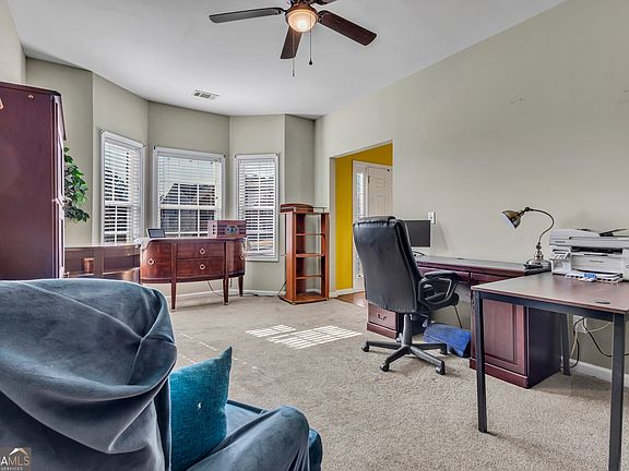Experience elevated living in this elegant 5-bedroom, 4-bath brick front residence set on just over a half-acre of exceptional space, sophistication, and comfort. Step into a grand two-story foyer accented by gleaming hardwood floors and an inviting sense of openness. The beautifully appointed eat-in kitchen is designed for effortless entertaining, featuring a generous center island sink, double ovens, cooktop range, breakfast bar, sunny breakfast area, and a walk-in pantry. The main level offers an impressive array of living spaces, including an oversized formal dining room, formal living room, and a spacious fireside family room perfect for gatherings. A large guest bedroom with full bath on the main adds convenience and flexibility. Upstairs, a dramatic catwalk leads to a bright and airy loft-ideal as a media or lounge space. Retreat to the enormous owner's suite complete with a private sitting room and a custom-designed walk-in closet. The spa-inspired bath showcases double vanities, a soaking tub, and a separate shower. Three additional secondary bedrooms provide generous space for everyone. Enjoy outdoor living on the expansive deck overlooking a private, fenced backyard-perfect for relaxation or entertaining. A full daylight basement offers limitless potential for future customization. Additional highlights include a 2-car garage and abundant storage throughout. Enjoy quick access to premier shopping, dining, entertainment, parks, and top-rated schools-all just minutes from your doorstep. This prime location offers unmatched accessibility. Conveniently positioned near Camp Creek Marketplace, Hartsfield-Jackson Airport, and major highways (I-285, I-85). Welcome Home!