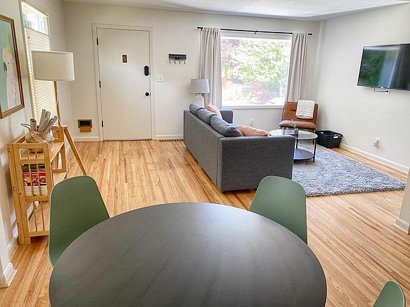 2 bedrooms / 1 bath. Fully furnished. The main floor open concept living, dining and kitchen is flooded with big windows and natural light. One bedroom is on the main floor with the additional bedroom being located upstairs. Smart TV, well-equipped kitchen with new appliances, comfortable queen size beds and in-unit washer and dryer make this a perfect home away from home during your stay in Portland. Brand new ductless heating and cooling mini-split system.
